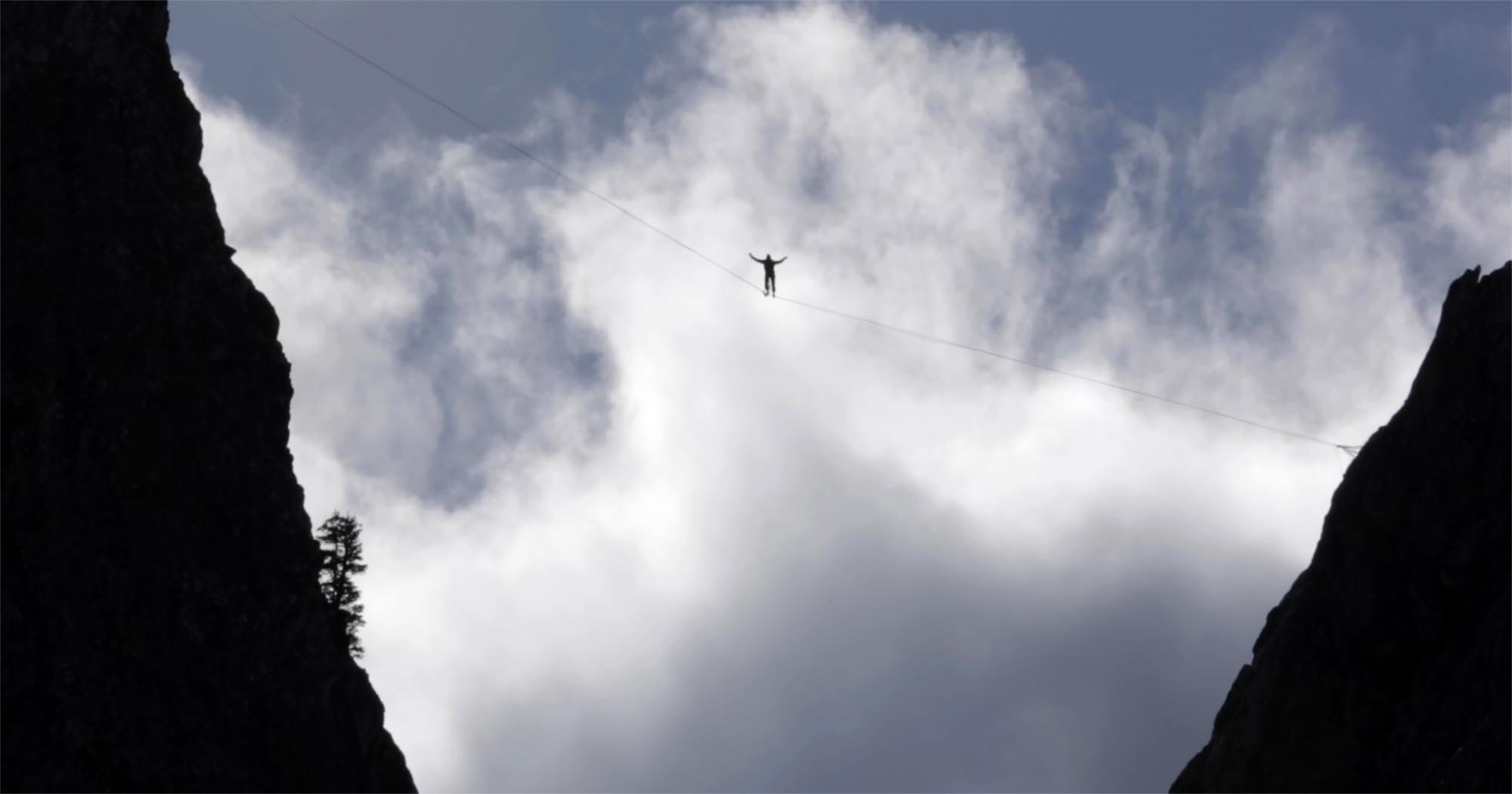 Suspended in the airy expanse between heaven and Earth, highliners walk a tightrope strung between two canyon walls. Wave Hands Like Clouds is an ode to finding focus and balance in a moment of exposed vulnerability that leaves the viewer breathless.